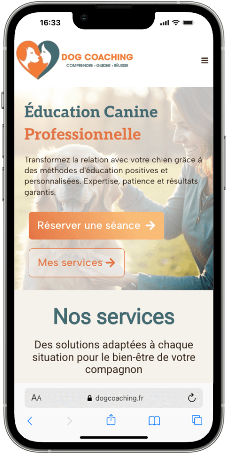 Création d’un site web professionnel pour un coach canin, visant à rendre l’offre lisible et instaurer une relation de confiance dès la première visite.