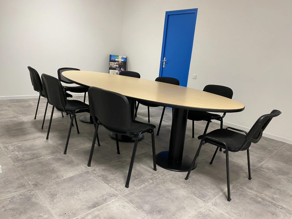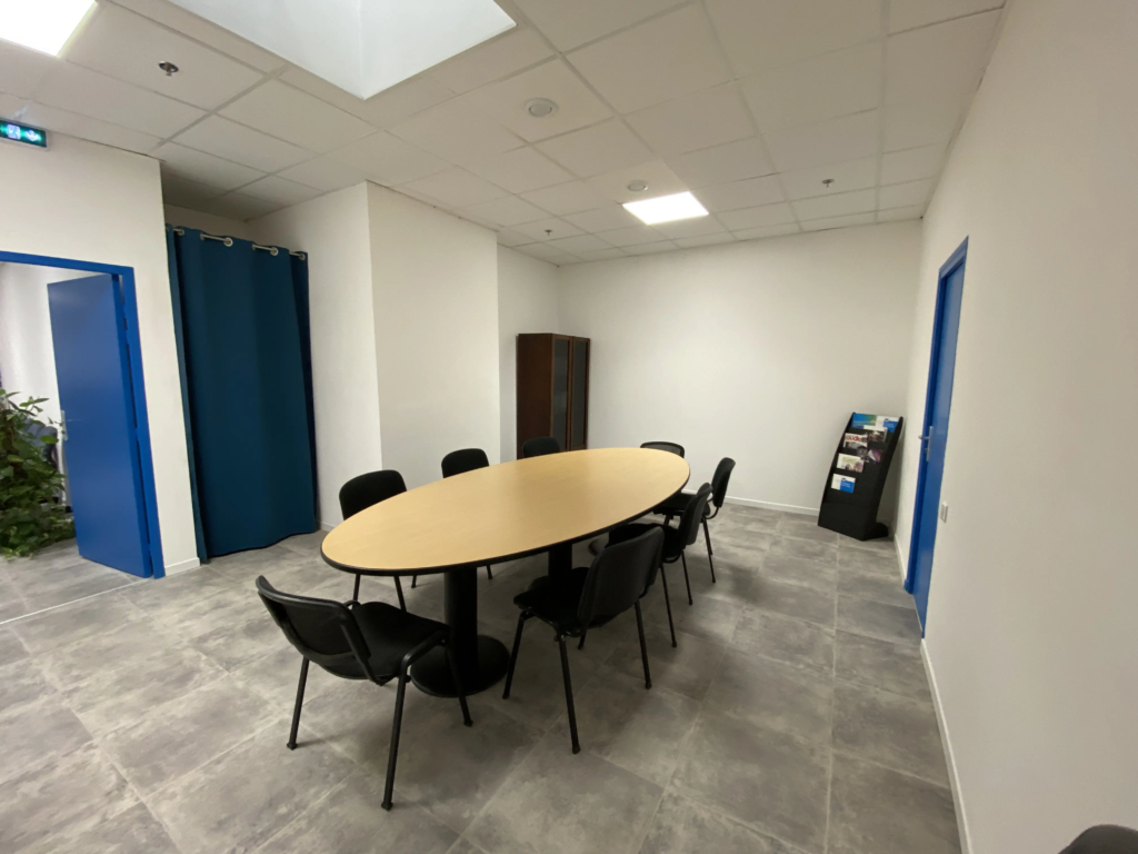 La salle de réunion est aménagée pour favoriser la concentration et la productivité. Son espace optimisé permet d’accueillir des réunions en petit comité dans un environnement agréable, propice au travail collaboratif et à la prise de décision.